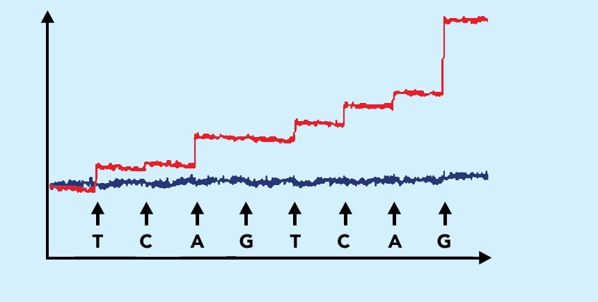 Поскольку включение нуклеотидов в растущую нить ДНК увеличивает количество заряженных молекул вокруг частицы, оно меняет сопротивление, измеряемое датчиком. Величина изменения сопротивления коррелирует с общим изменением заряда молекул ДНК и окружающих их слоев вокруг частицы, которое в свою очередь коррелирует с количеством включенных нуклеотидов.