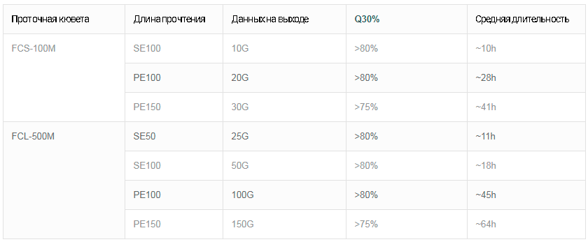 Кроме того, для удовлетворения требований к гибкости пропускной способности и времени в различных прикладных сценариях MGISEQ-200 продемонстрировал улучшение во времени, необходимом для выполнения секвенирования в различных режимах длины. Например, запуск PE100 может быть завершен с использованием проточной ячейки FCS 100M за 28 часов, а с проточной ячейкой FCL-500M будет завершен в течение 45 часов.